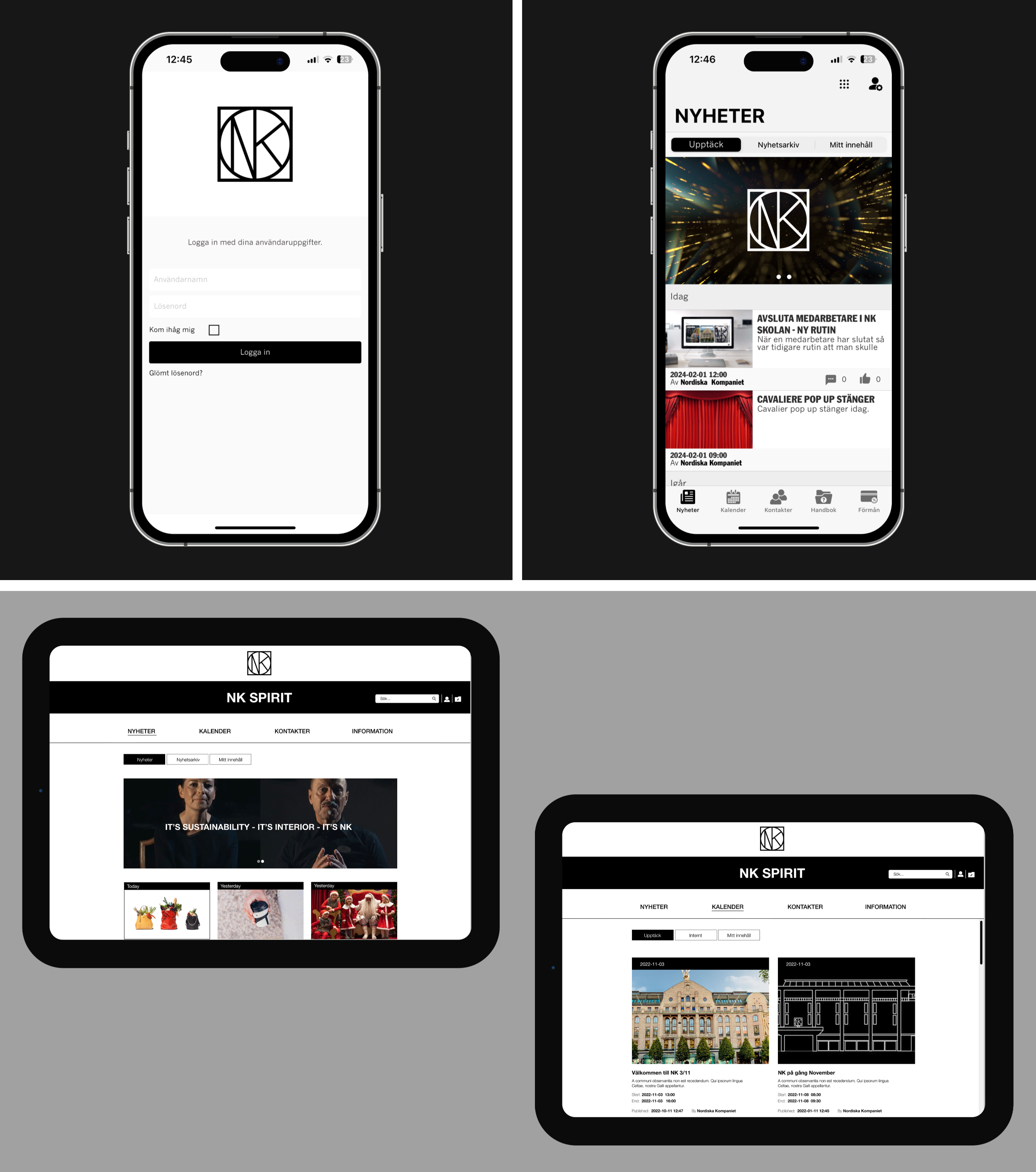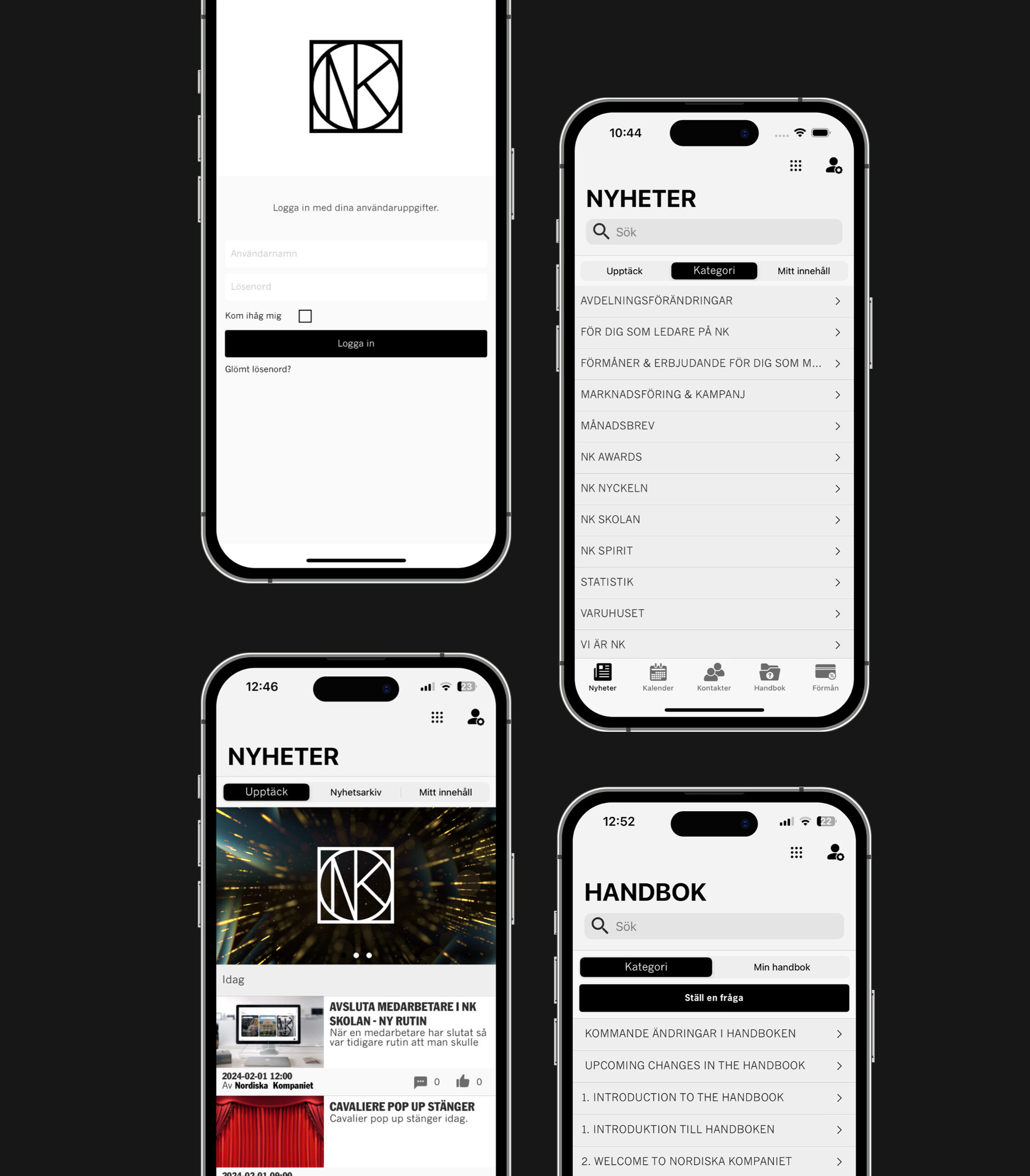 An internal communication tool for Nordiska Kompaniet (NK), one of Sweden’s most iconic department stores. The solution included a mobile app and a web-based desktop platform tailored for over 1,600 employees.
